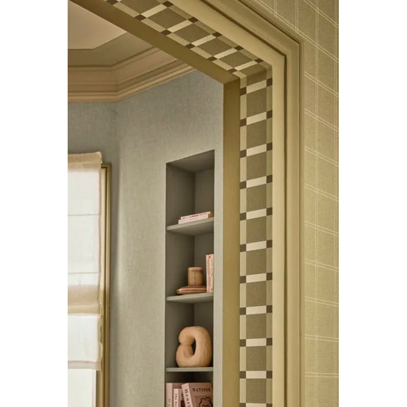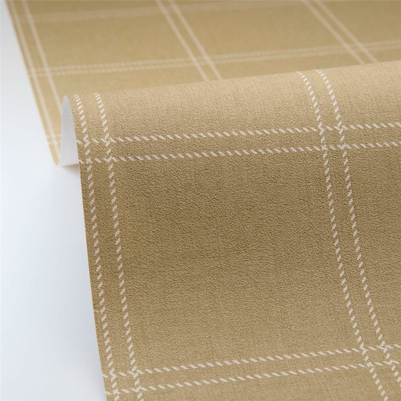 Papier peint tartan vert kaki. Caselio Line Up, papier peint intissé lavable. Dimensions : 53 cm x 10 m