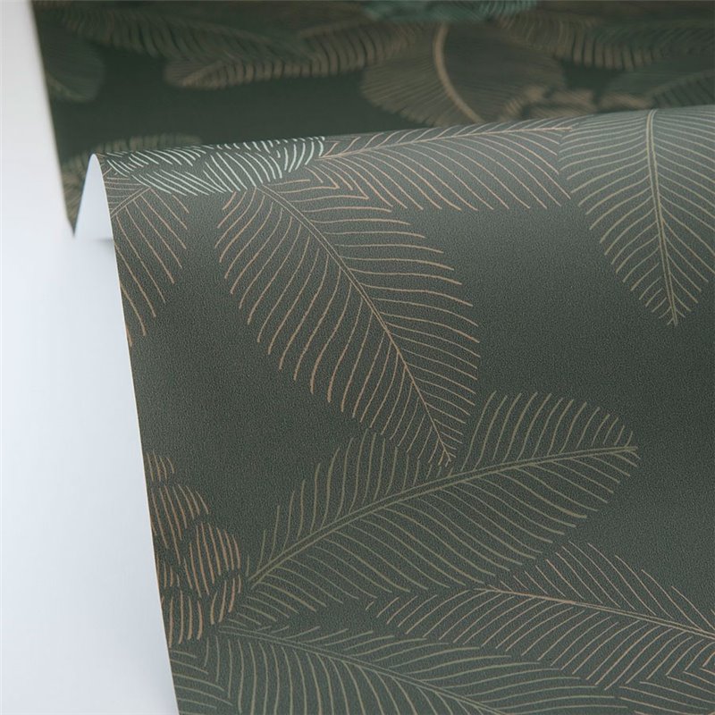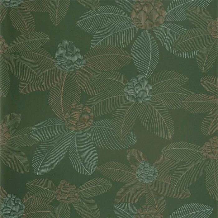 Papel pintado flor de loto estilizado verde musgo. Caselio Art of Botany, papel de pared calidad tejido no tejido lavable. Medidas: 53 cm x 10 metros