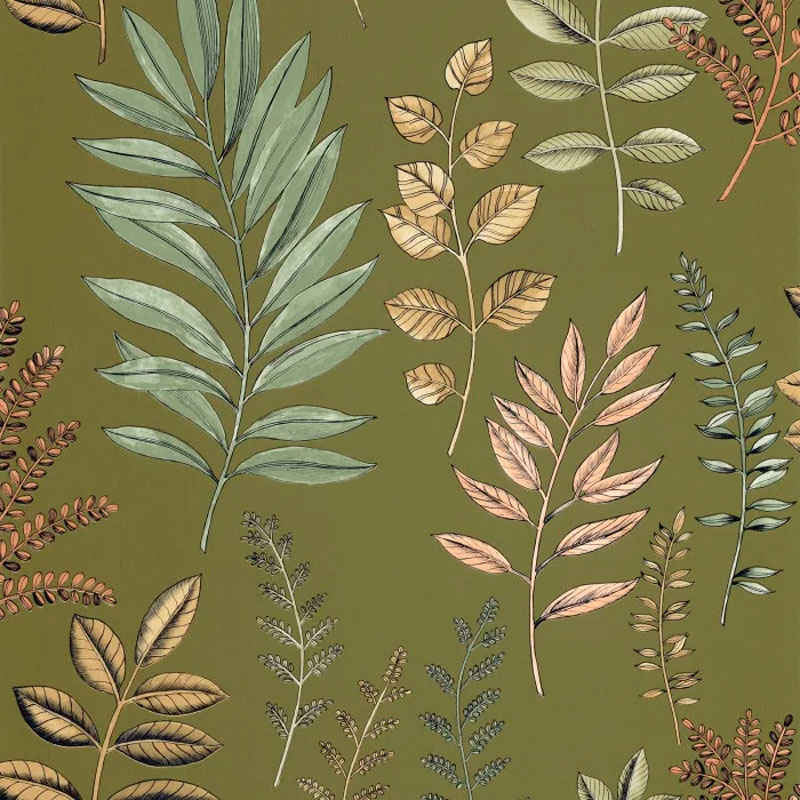 Papel pintado hojas verde, botánico estilo escandinavo. Caselio Art of Botany, papel de pared calidad tejido no tejido lavable. Medidas: 53 cm x 10 metros