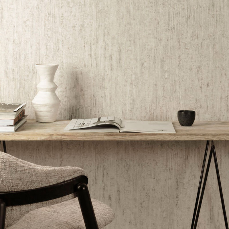 Papel pintado textura espiga beige claro. Dale vida a tus paredes en tu oficina en casa. Un diseño que transforma cualquier ambiente.