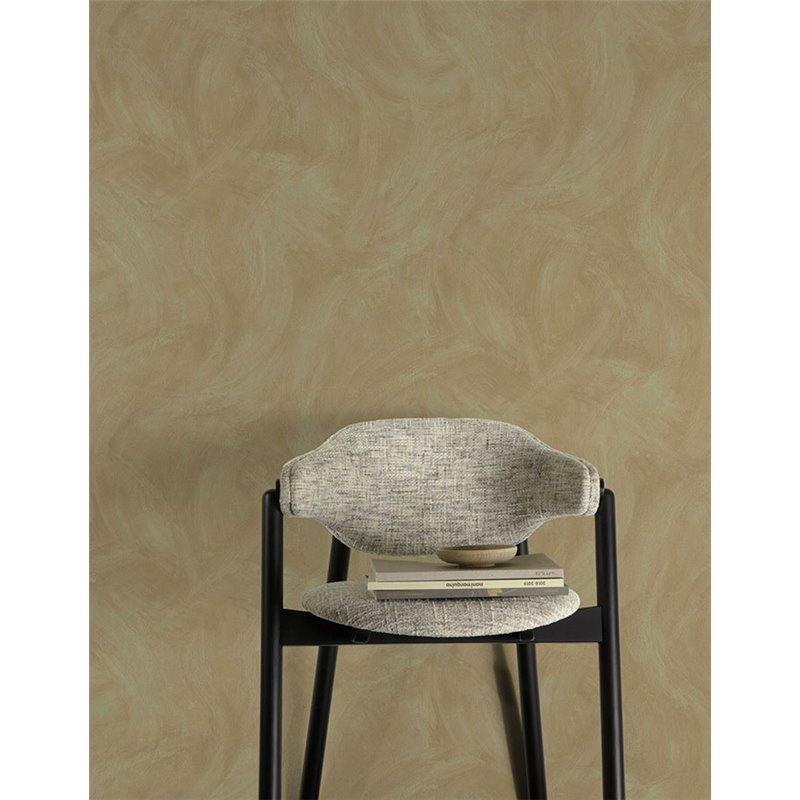 Papel pintado efecto estuco tonos verde ocre