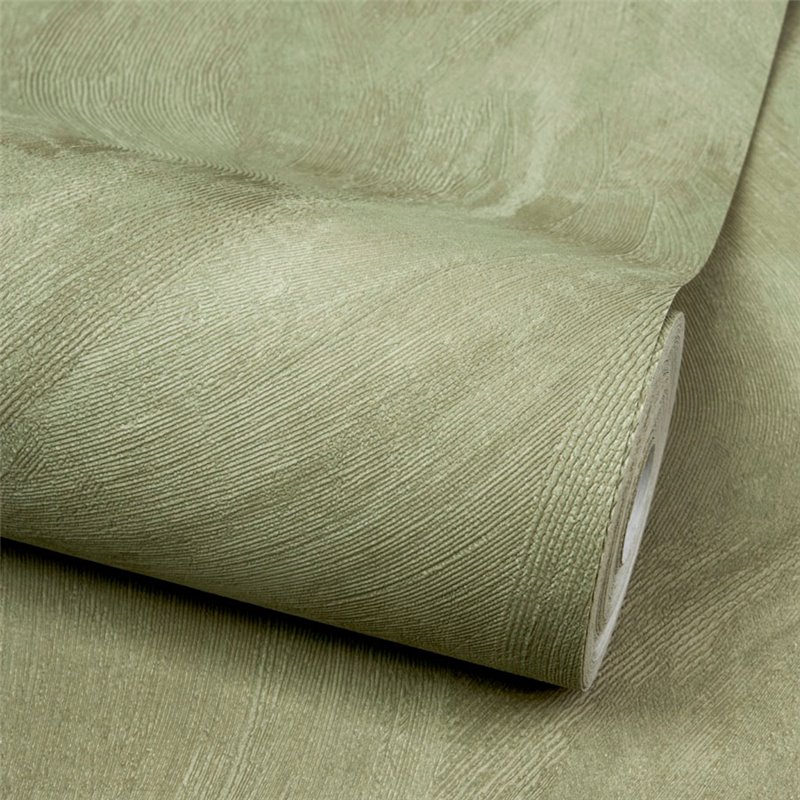 Papel pintado efecto estuco verde claro. Crea un ambiente acogedor ideal para tu rincón de lectura. Combina perfectamente con estilos modernos y clásicos.