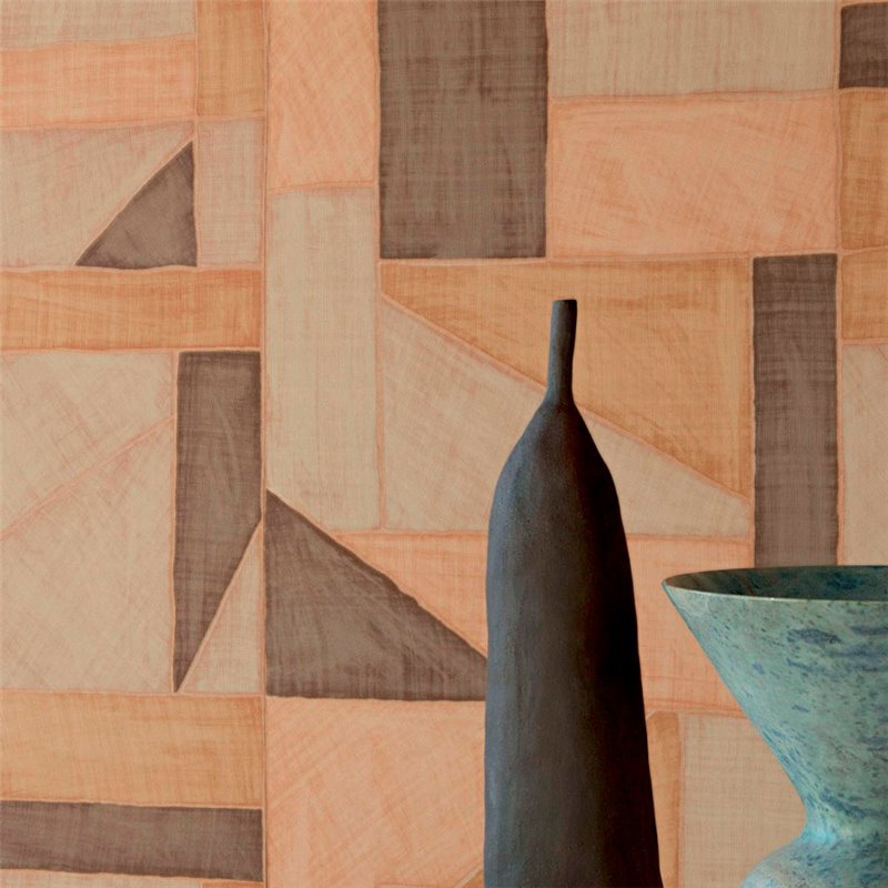Papel pintado geométrico formado por retales de rafia para un estilo artesanal Medidas del rollo: 1 x 10 metros