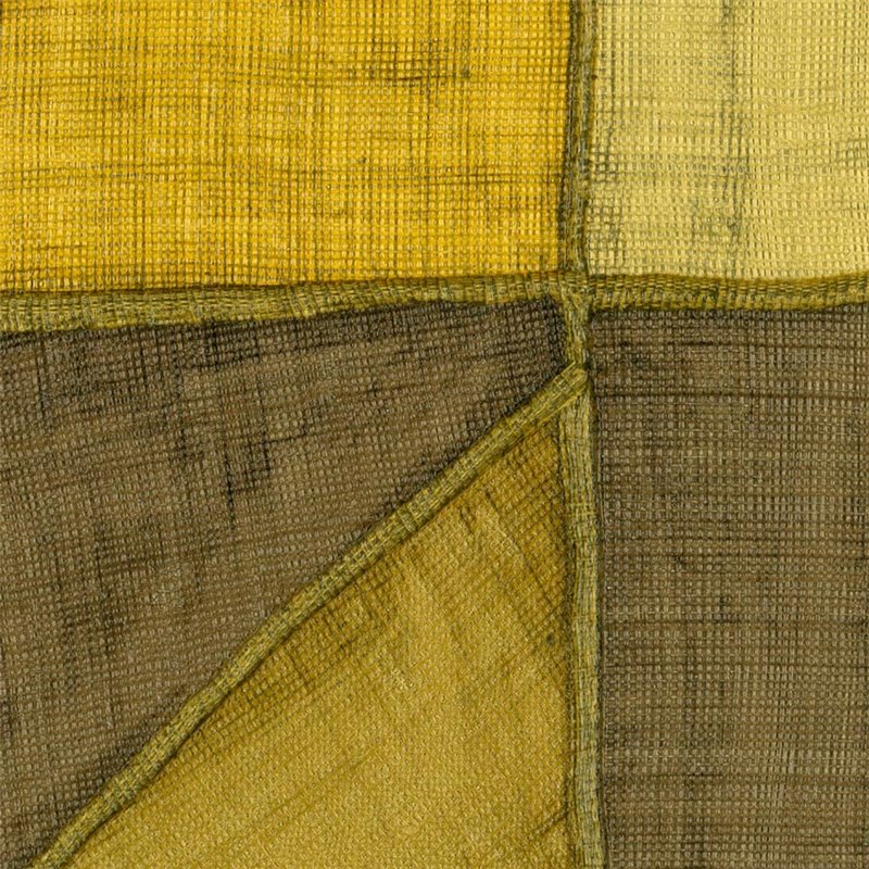 Papel pintado rafia tonos amarillos de retales forma geométrica