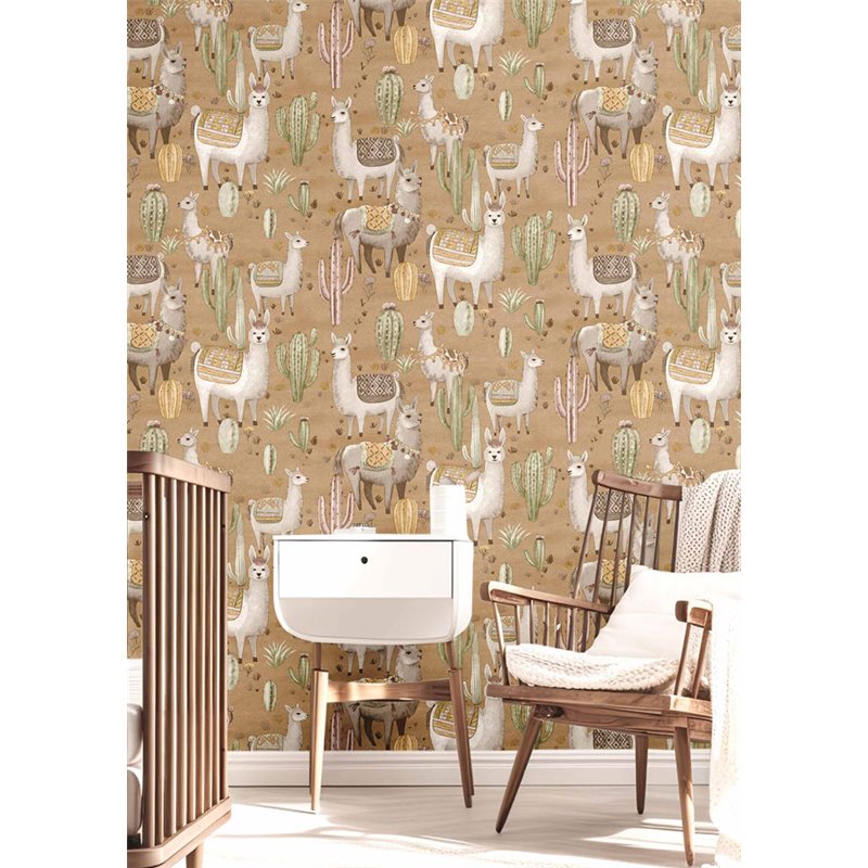 Cristiana Masi|Papel pintado infantil llamas cactus Marrón tierra|Infantil Cristiana Masi|Papel pintado infantil llamas cactus Marrón tierra|Infantil