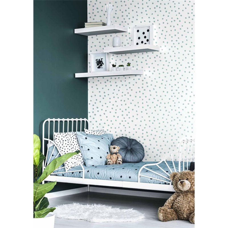 Tapete für Kinder mit Punkten auf weißem Hintergrund in hellem Beige. Modell MiniME 17120 von Cristiana Masi.