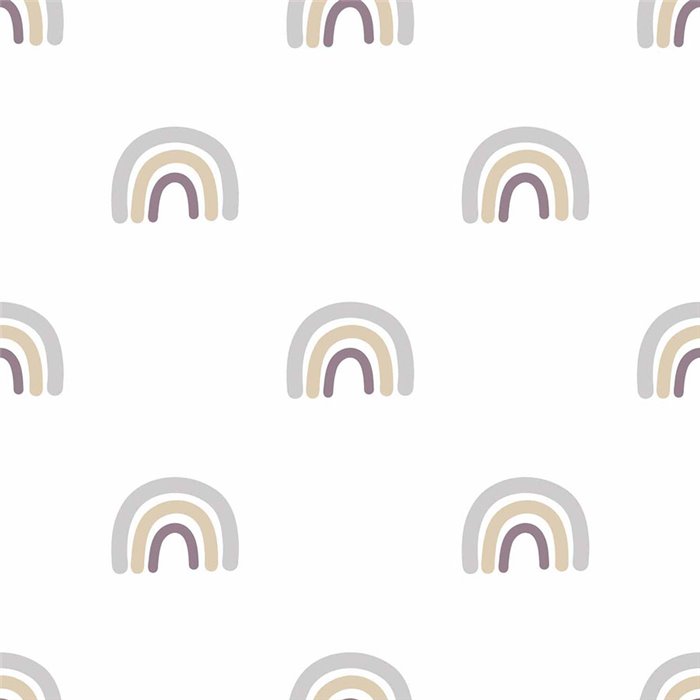 Papel pintado infantil con diseño de arcoíris en Lila grisáceo. Producto MiniME 17129 de Cristiana Masi.