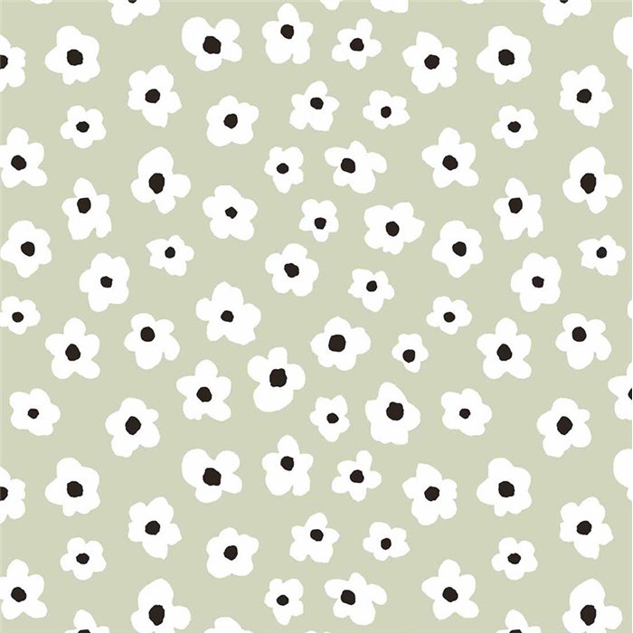 El papel pintado infantil MiniMe 17136 de Cristiana Masi muestra un fondo Beige claro con simpáticas flores blancas esparcidas.