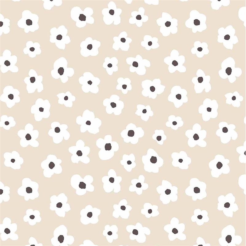 El papel pintado infantil MiniMe 17136 de Cristiana Masi muestra un fondo Beige claro con simpáticas flores blancas esparcidas.
