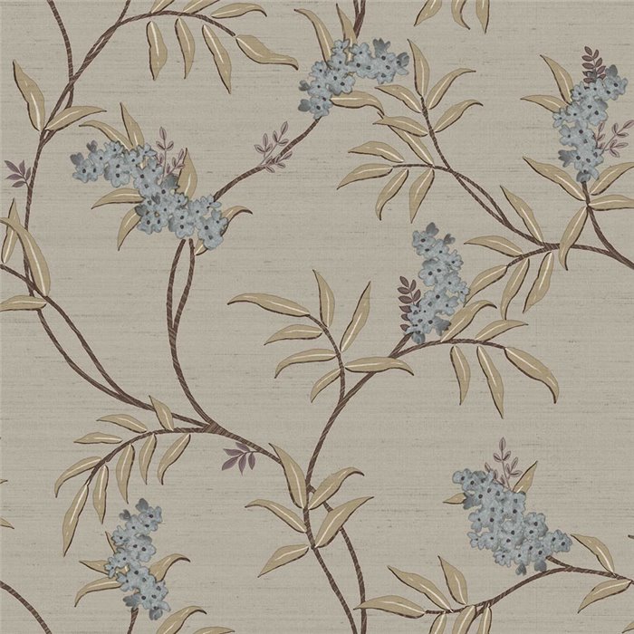 El papel pintado flores japonesas gris y azul Tradizioni 33303 de Cristiana Masi consigue un aire fresco.
