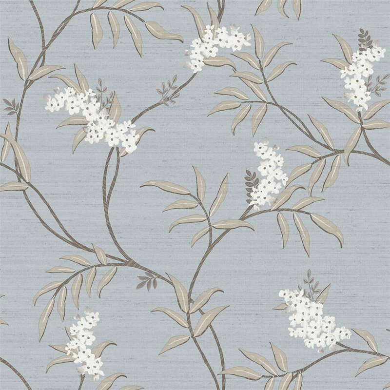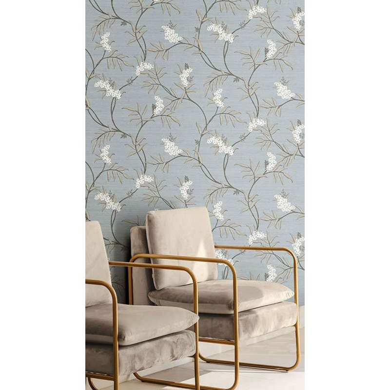 El papel pintado flores japonesas gris y azul Tradizioni 33303 de Cristiana Masi consigue un aire fresco.