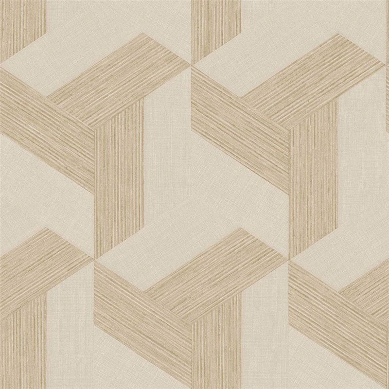 El papel pintado geométrico arena Sintesi 27503 de Cristiana Masi combina sobriedad y calidez con un patrón moderno que realza las paredes con discreta sofisticación.
