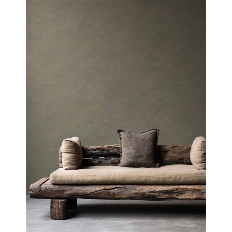 El papel pintado efecto cal verde oliva Sintesi 27559 de Cristiana Masi aporta carácter natural y equilibrio con una estética artesanal ideal para decoración relajada.