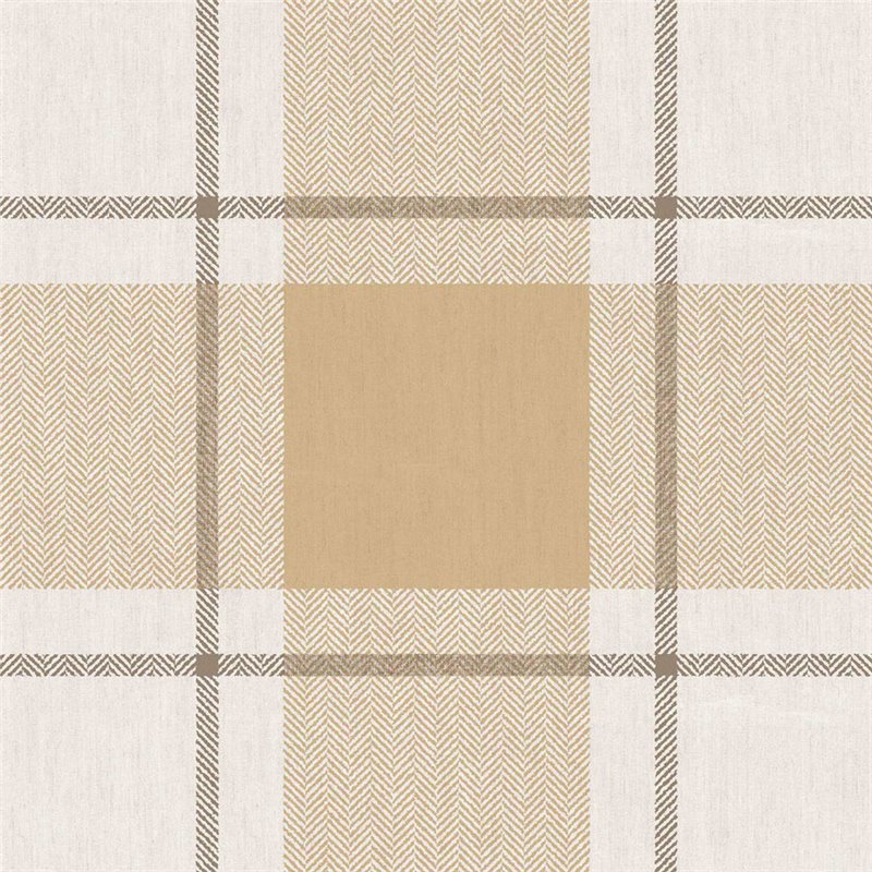 El papel pintado cuadros beige dorado Top Stripes 38413 de Cristiana Masi aporta calidez y armonía gracias a su diseño de cuadros escoceses con inspiración tradicional.