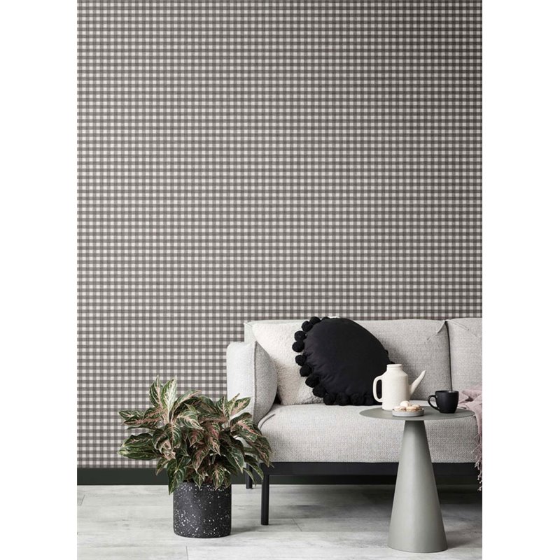 El papel pintado cuadros vichy topo Cristiana Masi Top Stripes 38418 aporta elegancia informal para ambientes con carácter neutro y atemporal.