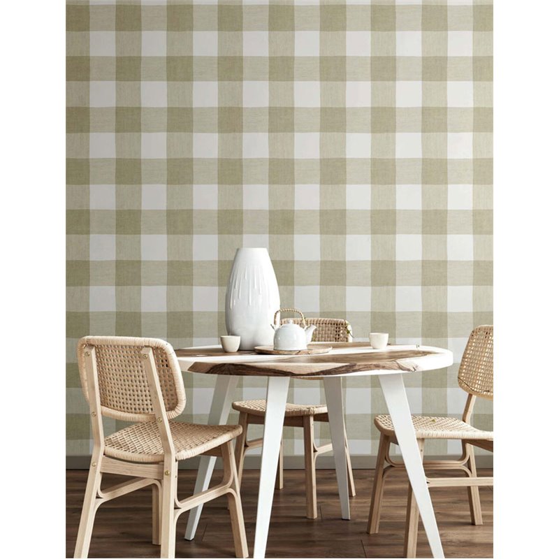 Papel pintado cuadros vichy grandes verde