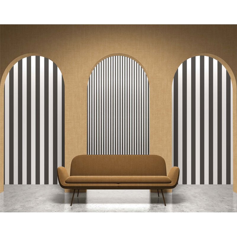 Papel pintado rayas anchas ocres de efecto textil y diseño atemporal, perfecto para ambientes cálidos. Modelo 38473.