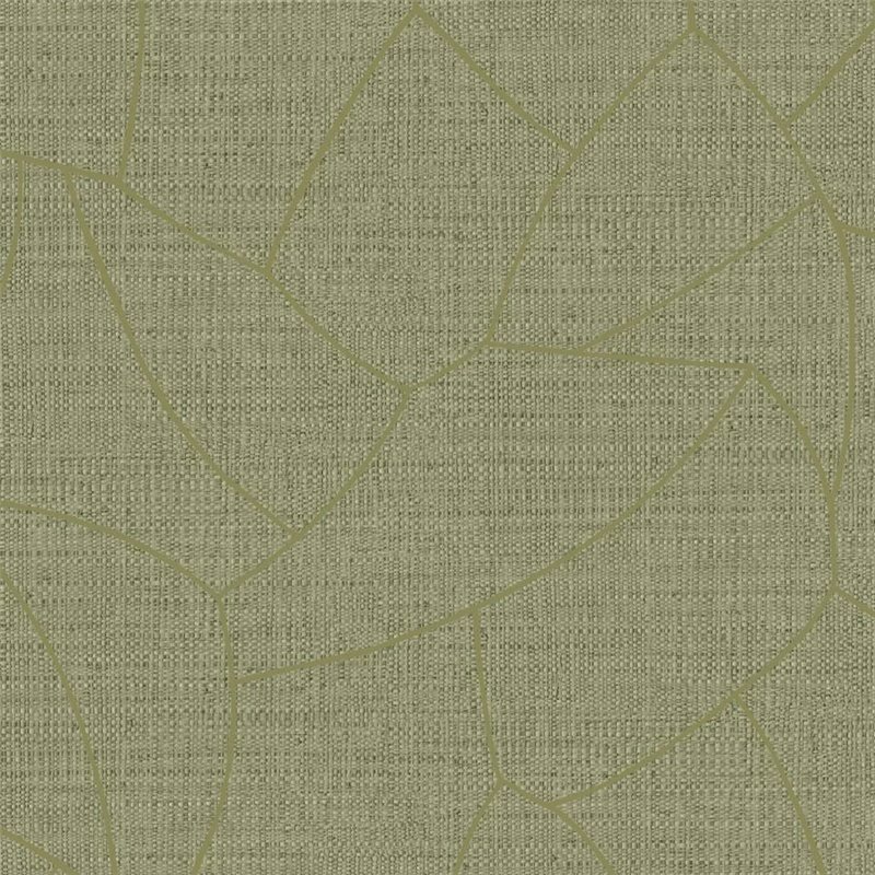 El papel pintado Caselio Melody mezcla una composición ecléctica con veta de rafia y delicados detalles dorados o tono sobre tono, creando un diseño expresivo disponible en colores como marrón sabana o verde aguacate.