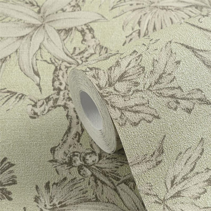Papel pintado jungle tropical estilo colonial gris