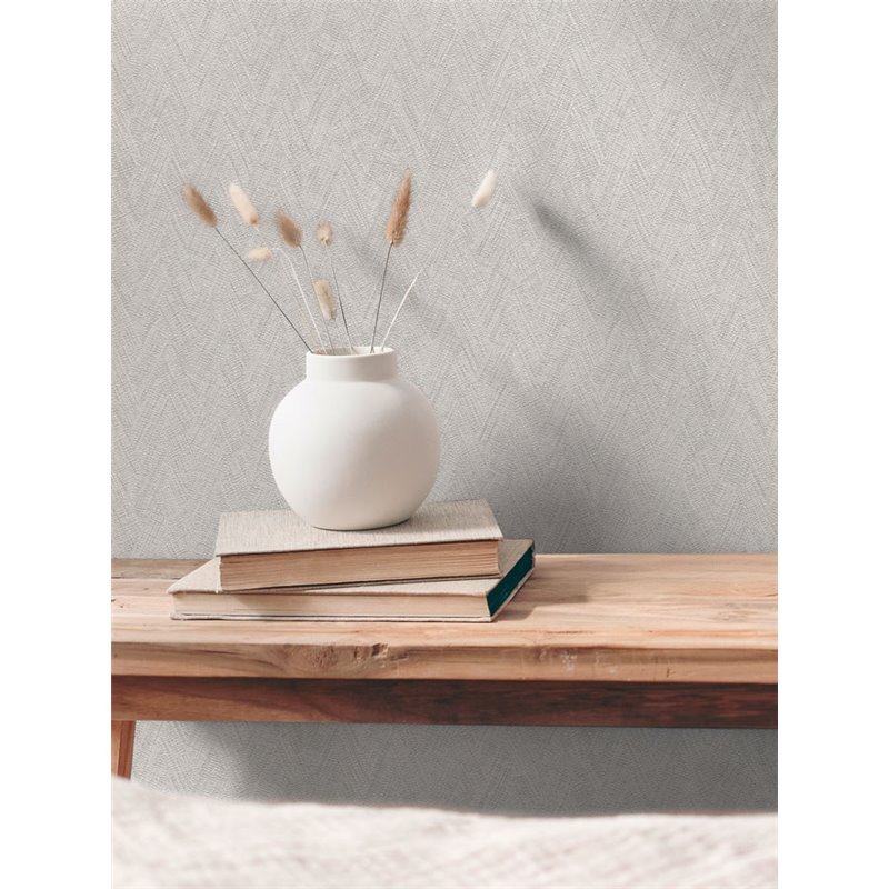 Diseño escandinavo con espiga en gris, un papel pintado pensado para dormitorio con una estética moderna y equilibrada. Papel pintado tejido no tejido, rollo de 53 cm x 10 m.