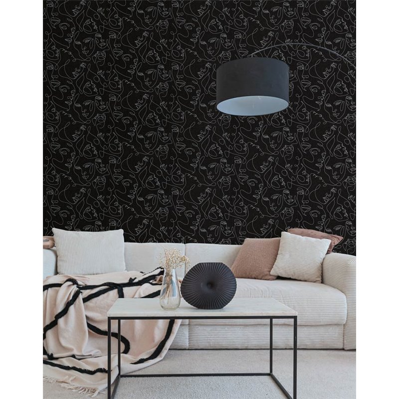 La combinación de negro y plata en un estilo figurativo moderno da a este papel pintado elegancia y carácter para salón o restaurante.