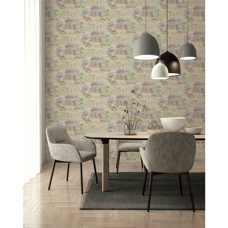 Papel pintado oriental paisaje tonos pastel