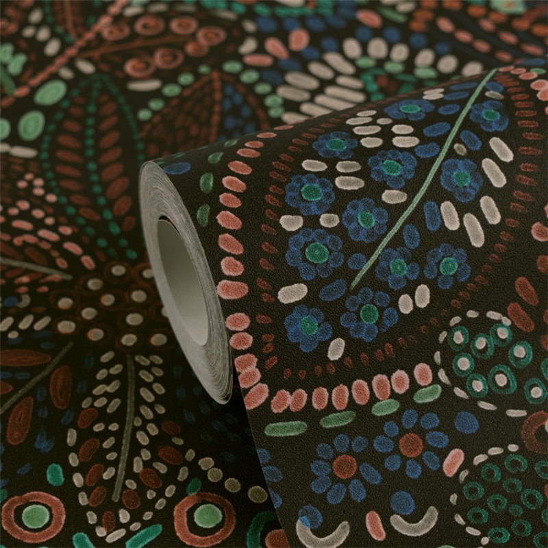 Papel pintado boho chic floral tonos oscuros