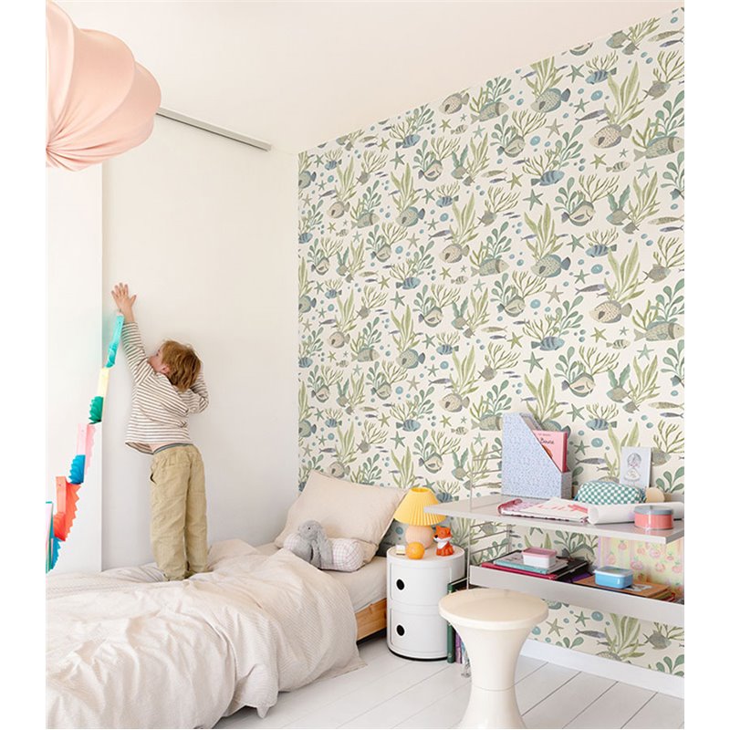 Un diseño de peces y corales marinos que transforma el dormitorio infantil en un mundo submarino, estimulando la imaginación de forma suave.