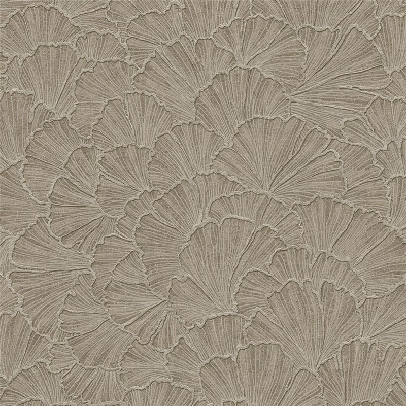 Con un aire floral, este papel pintado de hojas de ginkgo en marrón aporta calidez y un toque orgánico a la pared.