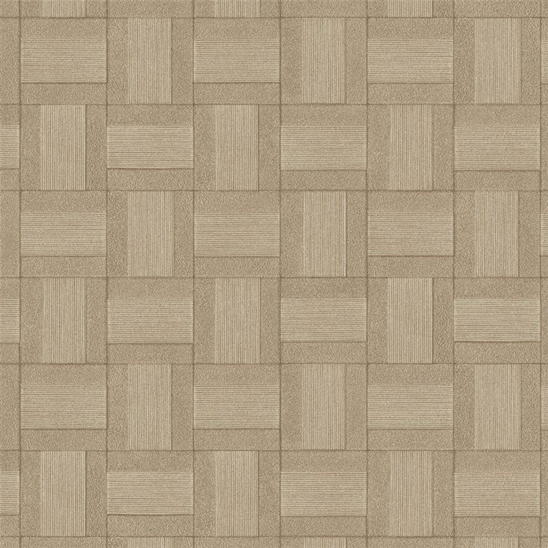 Este papel pintado con mimbre tipo mosaico en marrón aporta profundidad visual y un acabado cálido de inspiración natural.