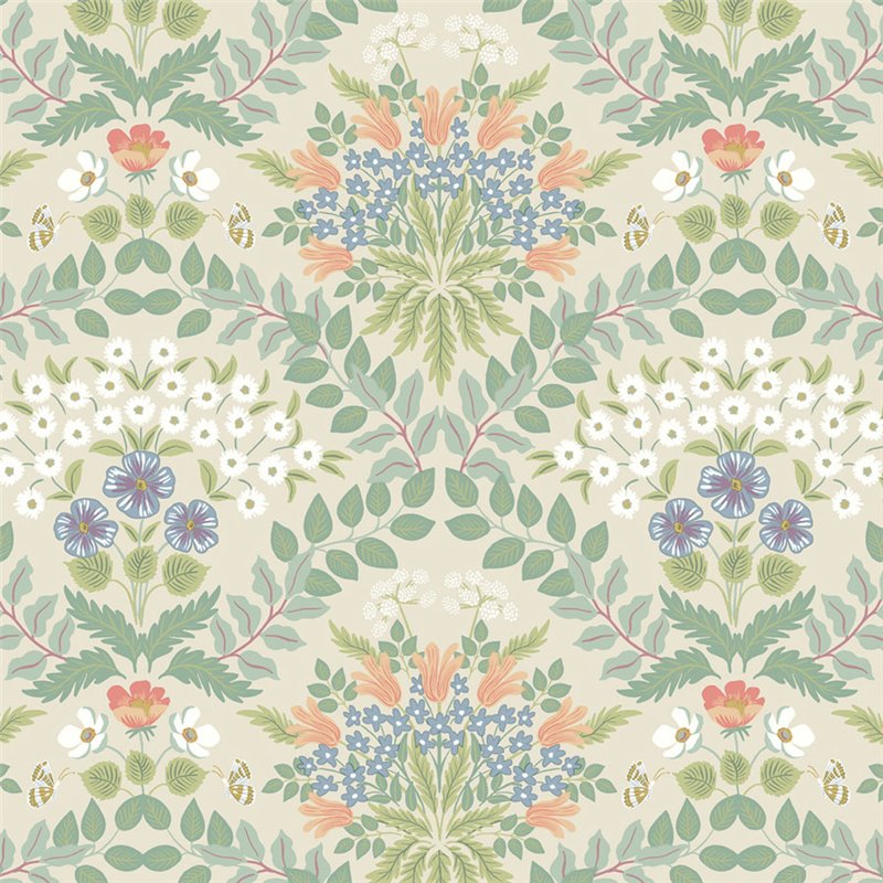Composición de flores pequeñas pensada para el dormitorio, perfecta para un ambiente relajante; papel pintado de estética suave y cuidada.