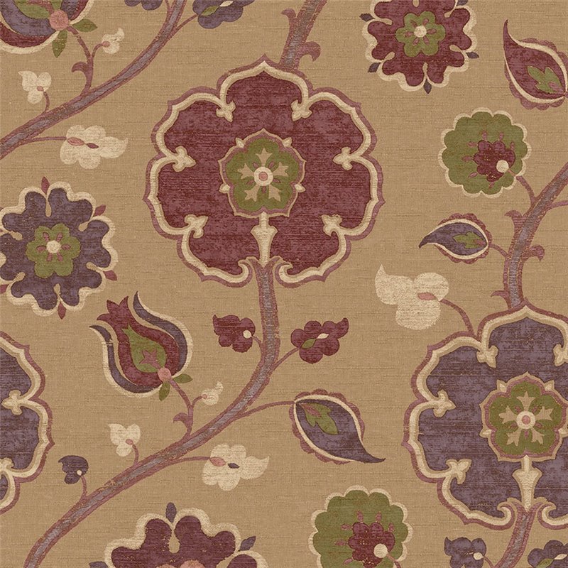 Papel pintado de flores grandes estilo indio terracota