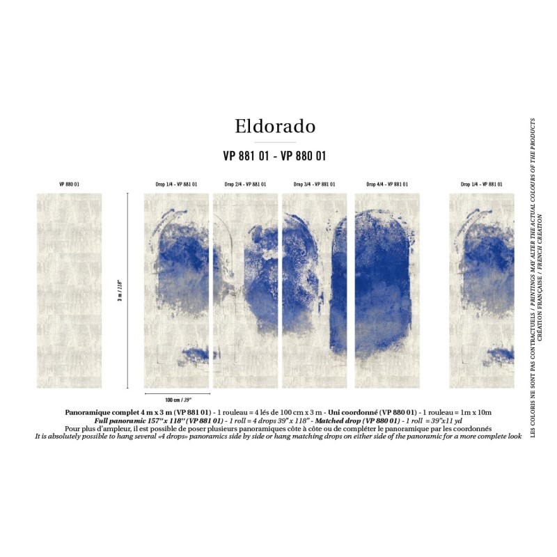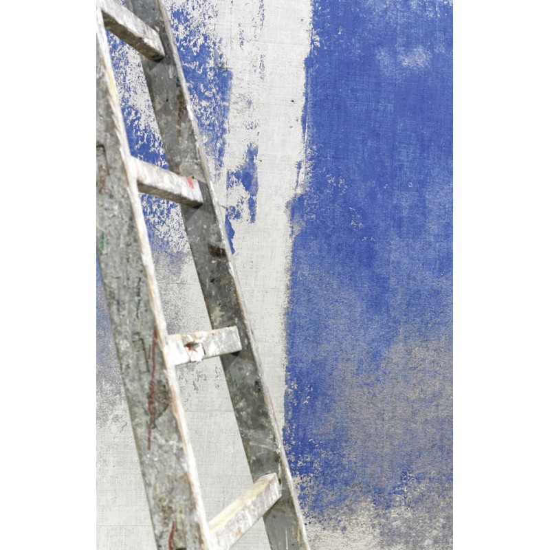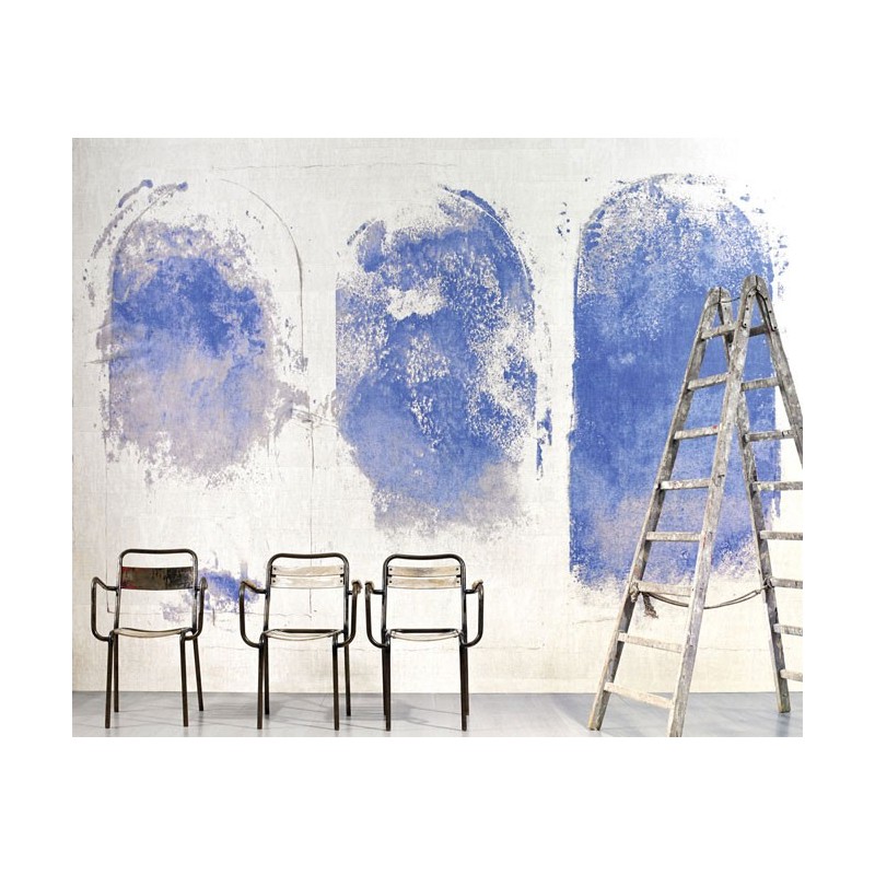 Mural pared contemporáneo, composición pictórica azul índigo de Elitis, colección ElDorado. Medidas: 400 x 300 cm.