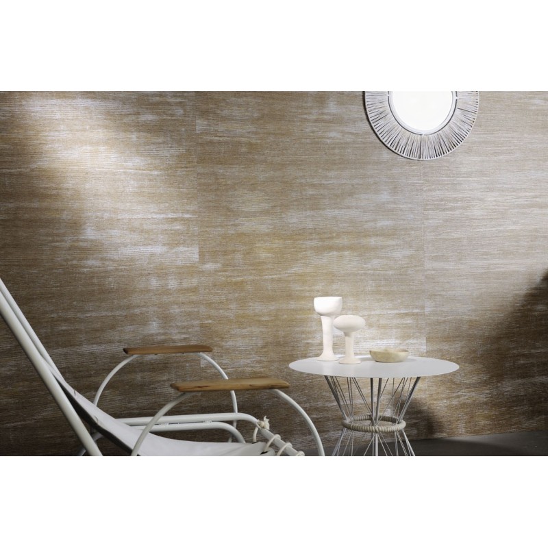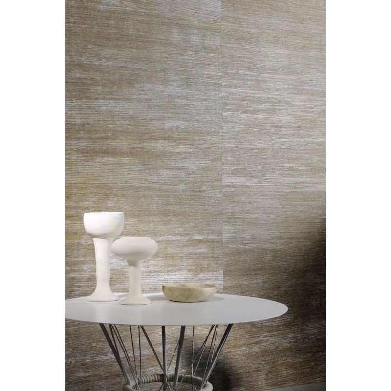 Papel pintado patrón espiga efecto madera marrón y rojo, ideal para interiores con estilo. Marburg Travertino 33379.