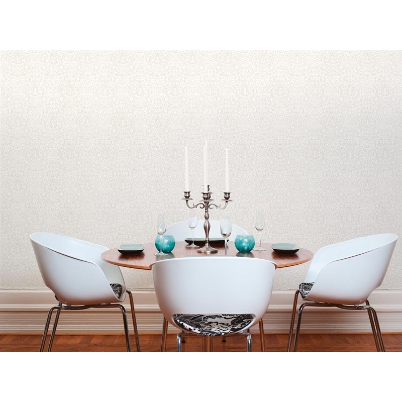 Damasttapete in Weiß mit Reliefmuster, klassisch und raffiniert für ein zeitloses Ambiente. Architects Paper Tessuto II, waschbare Vliestapete. Maße: 53 cm x 10 Meters