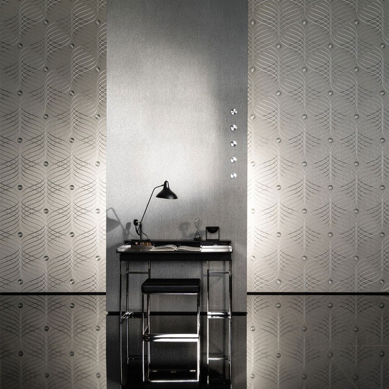 Tapete Stuckoptik gestreift Silber von Marburg, Kollektion Luigi Colani, waschbare Vliestapete. Maße: 70 cm x 10 Meters
