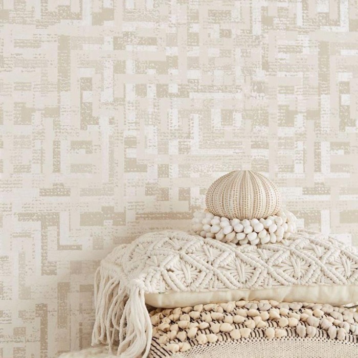 Afrikanische Tapete geometrische Muster metallisiert 376013 von Eijffinger, Kollektion Siroc. Rollenmaße: 52 cm x 10 Meters. Abwaschbare Vliestapete