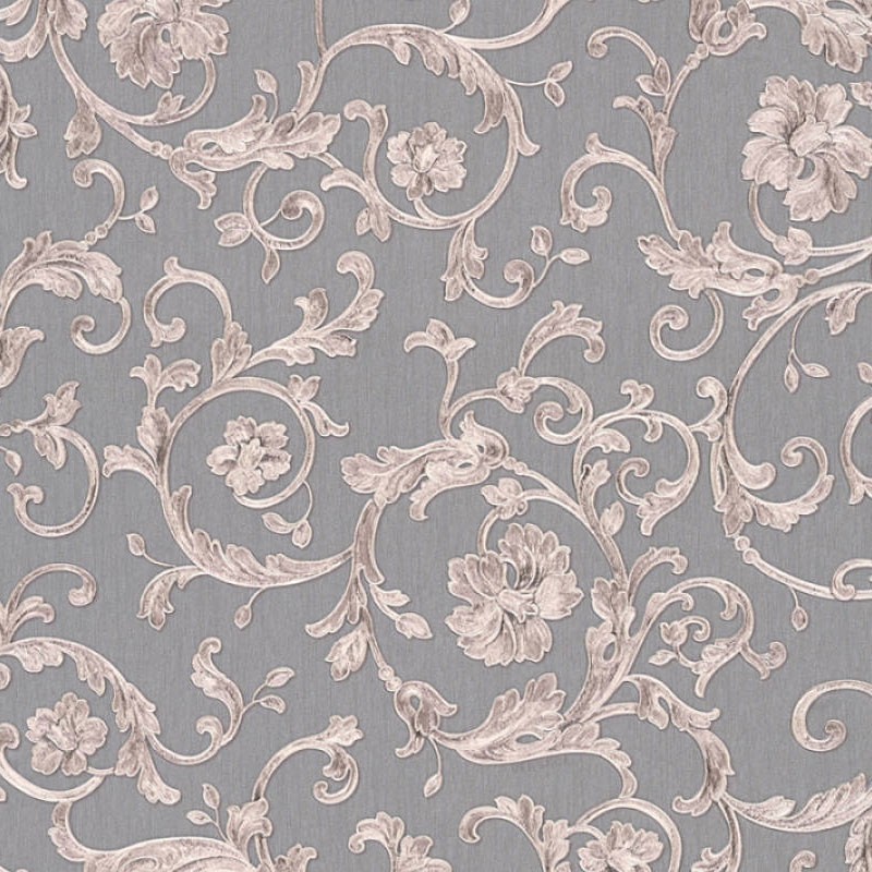 Ornamentale florale Tapete metallisch mit Stickereien Hochwertiges von Versace, Vinyl-Qualität und abwaschbar. Maße: 70 cm x 10 Meters
