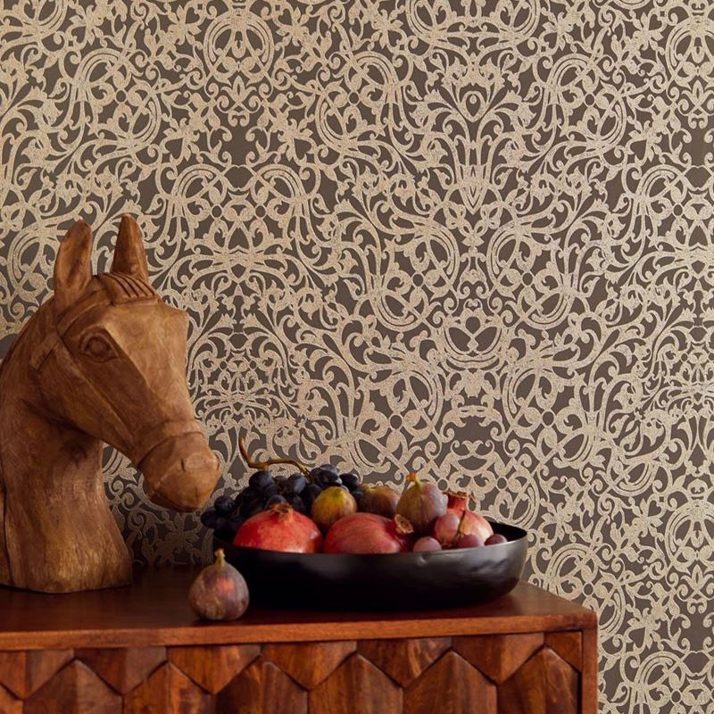 Tapete Versace floral ornamental schwarz bunt Hochwertiges von Versace, Vinyl-Qualität und abwaschbar. Maße: 70 cm x 10 Meters