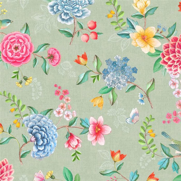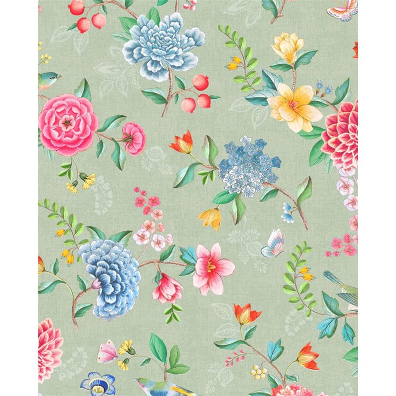Romantische Blumentapete in Hellblau und mehrfarbig, ein zartes Muster, das Leichtigkeit und dekorative Frische bringt. Pip Studio de Eijffinger, waschbare Vliestapete. Maße: 52 cm x 10 Meters