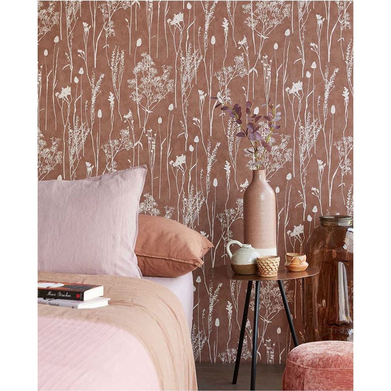 Tapete skandinavisch floral ocker 300812 von Eijffinger, Kollektion Waterfront. Rollenmaße: 52 cm x 10 Meters. Abwaschbare Vliestapete