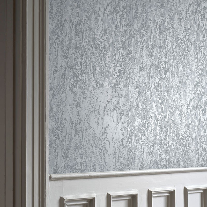 Tapete modern stahlblau abgeblätterte Wandoptik metallisch