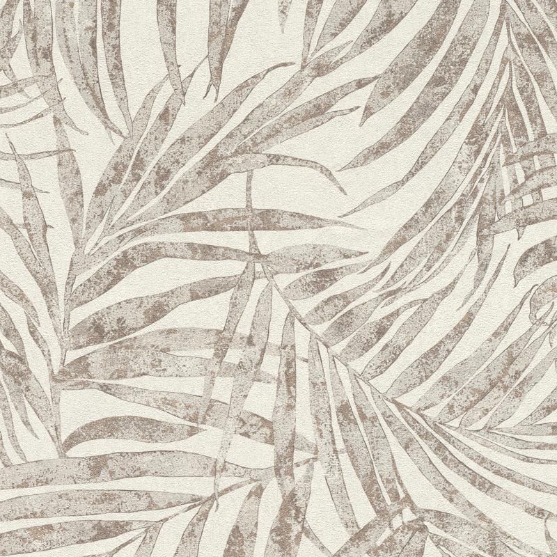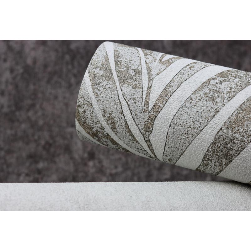 Graue und goldene Blätter auf rauem weißen Hintergrund. Verkauft pro Rolle, Maße: 53 cm x 10 Meters