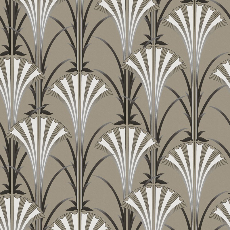 Art-Déco-Tapete mit Fächern Beige-Champagner glänzend
