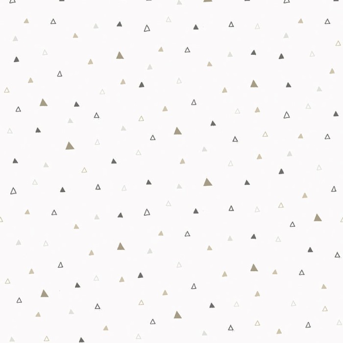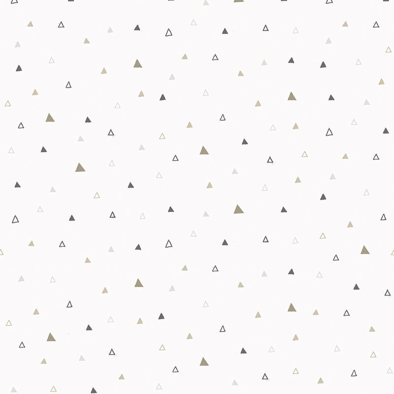 Kinder-Tapete Weiß mit braunen und schwarzen Dreiecken von Khroma, Kollektion Be Happy. Vliestapete waschbeständig, Maße: 53 cm x 10 m.