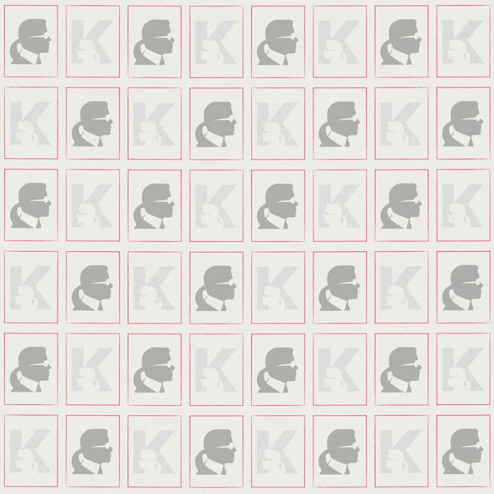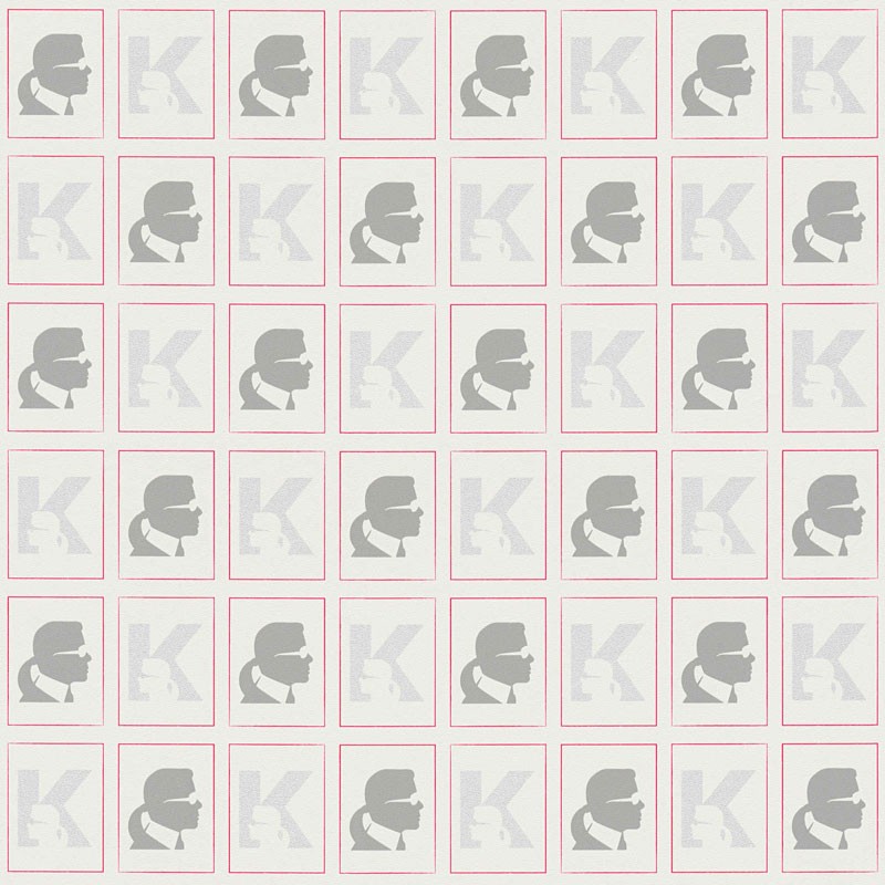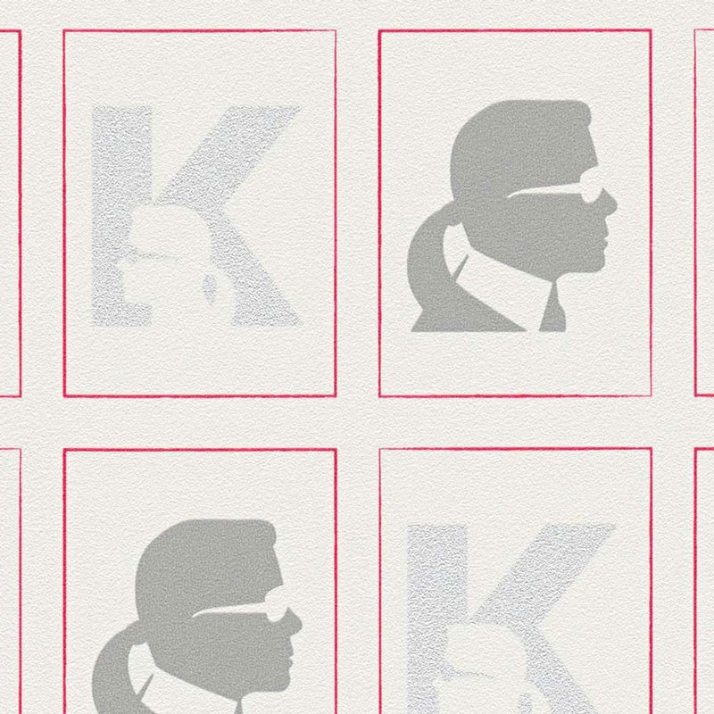 Tapete Logo von Karl Lagerfeld in Weiß und Grau, Dekorativer Stil, der sich an verschiedene Räume des Hauses anpasst. As Creation Karl Lagerfeld 378422.