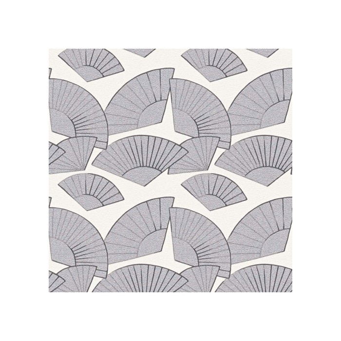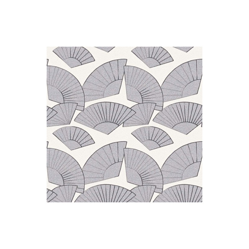 Tapete Fächer grau weiß und silberne Profile, Verleihe deinen Räumen Charakter mit diesem vielseitigen Design. As Creation Karl Lagerfeld 378471.
