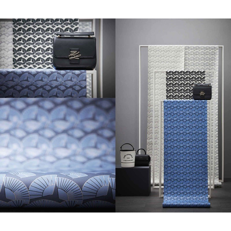Design gedacht für gemütliche und zeitgenössische Umgebungen. Tapete Fächer Karl Lagerfeld blau und silber As Creation Karl Lagerfeld 378474.