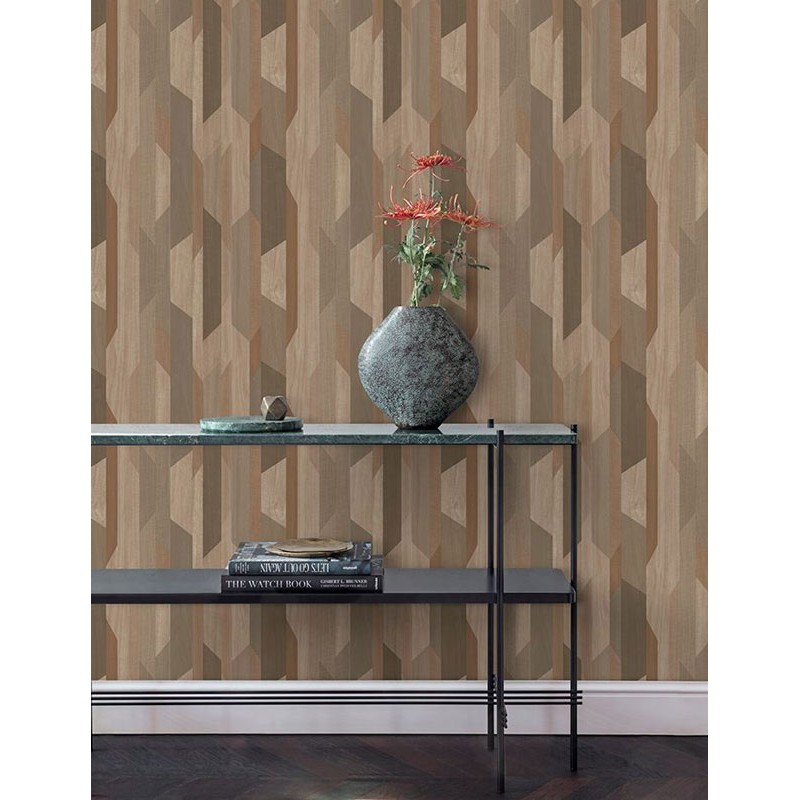 Mosaik Tapete exotische Blätter Holzeffekt beige von Casamance, Kollektion Textures Vegetales. Abwaschbare Vinyl-Qualität, Maße: 70 cm x 10 m.