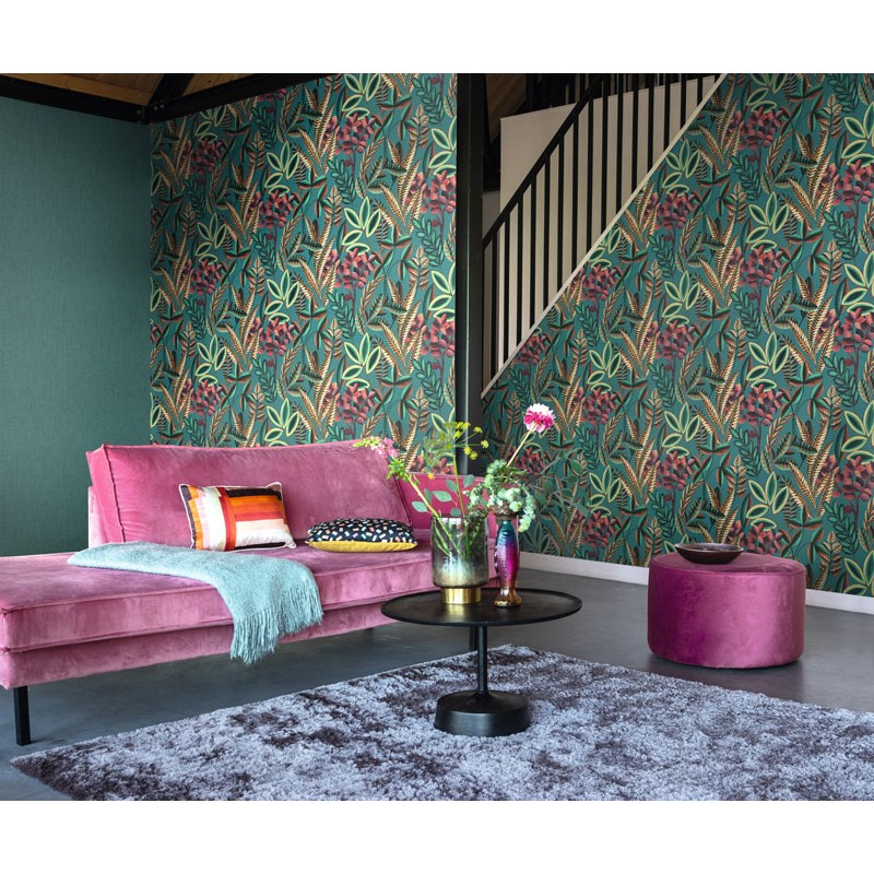 Tapete floral modern Fantasie Türkistöne de Rasch, colección Florentine. Vliestapete waschbeständig, Maße: 53 cm x 10 Meters